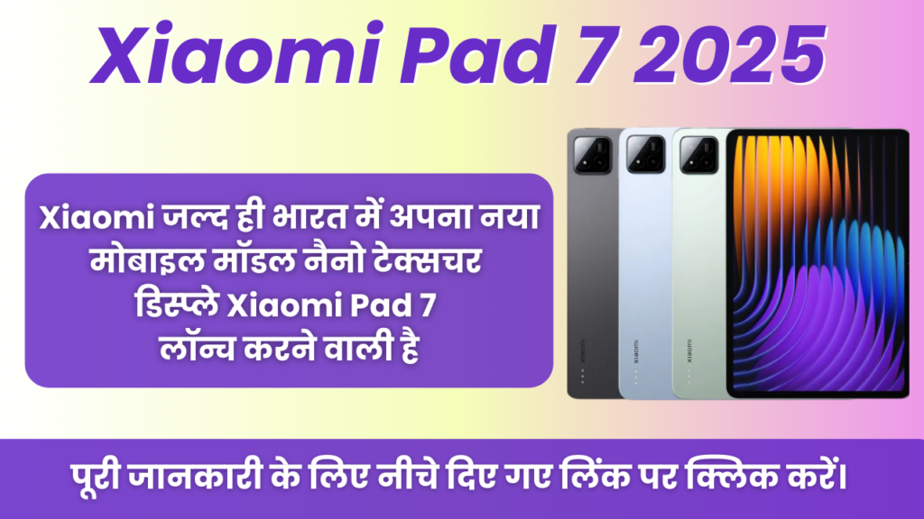 - Xiaomi pad 7 launch date in India : Xiaomi जल्द ही भारत में अपना नया मोबाइल मॉडल Xiaomi Pad 7 लॉन्च करने वाली है