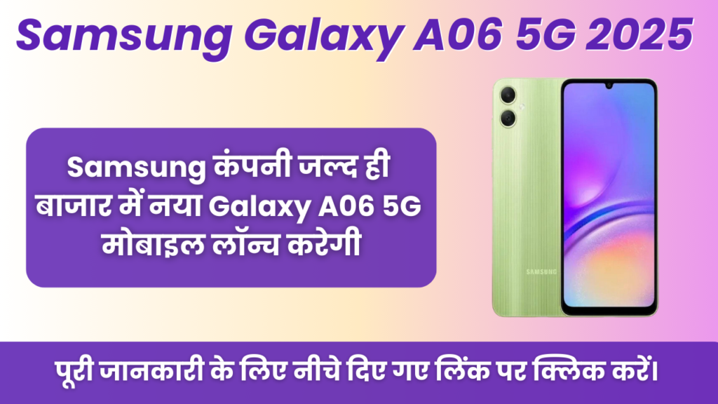 - Samsung Galaxy A06 5G 2025 : Samsung कंपनी जल्द ही बाजार में नया Galaxy A06 5G मोबाइल लॉन्च करेगी