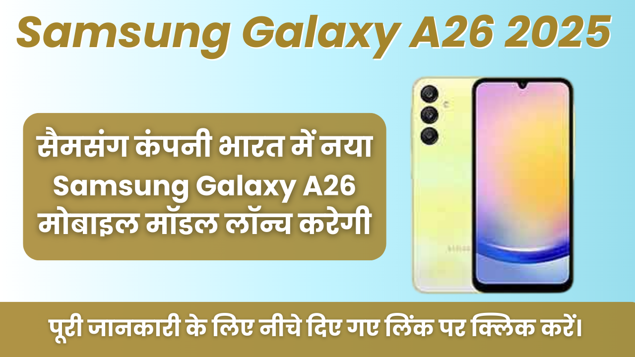 Samsung Galaxy A26 2025 : सैमसंग कंपनी भारत में नया Samsung Galaxy A26 मोबाइल मॉडल लॉन्च करेगी